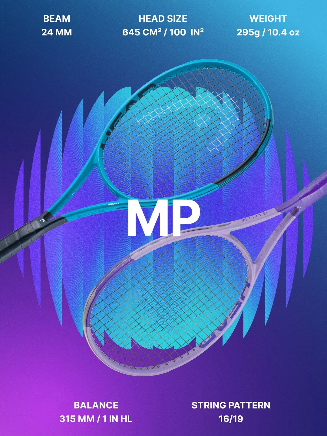 Explosive power is combined with the touch to play delicate drop shots in the BOOM MP 2026, which has been upgraded with the latest technologies for even more power, confidence and fun. Part of a BOOM series that offers the highest power level in the HEAD tennis racquet universe, this versatile model is designed for intermediate, advanced and tournament players who are looking for easy, effortless power and for those who like to attack.