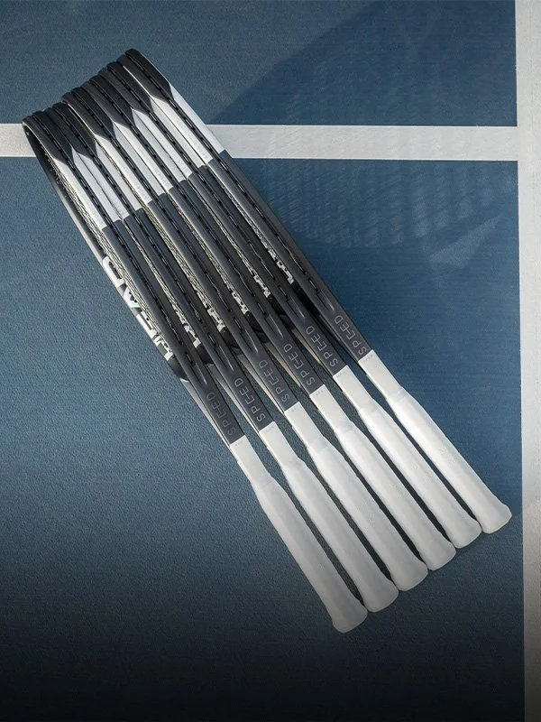 This new release brings a new asymmetrical look for a whole new stylish aesthetic. Trending pearl white & metallic blue-black drive a distinctive new look. You’ll feel improved stability, power and control with the inclusion of Head’s new Hy-Bor technology. Directional drilling drives a better sweetspot and a plush impact feel for the perfect mix of power under control. And you’ll get the most out of your swing speed thanks to the aerodynamic cross-section of the Speed beam. Check out the lineup below to see which Speed is right for your game.